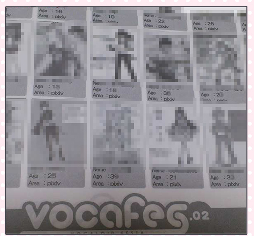 「VOCALOID FESTA02」のイベントにおいて、カタログ内にpixivユーザーの年齢が公開されていた件にきましては、VOCALOIDが幅広い年齢層に楽しまれ ていると言う事などを踏まえて、色々な方に理解を頂けたらと思い、ウッド•ベル【 VOCALOID FESTA 】の判断を元に掲載しました。