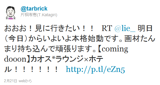 ぴ糞侮のカオスラウンジ騒動でTINAMIちゃんに逃げ込んだ流浪の民のじょにぃです、こんびにわ。