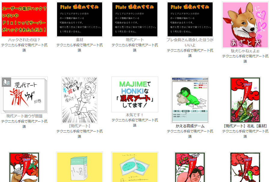 しかし削除祭りが起きると返って加速するのがVIPでして、今『現代アート』タグ付きの絵がすごいことになってます。