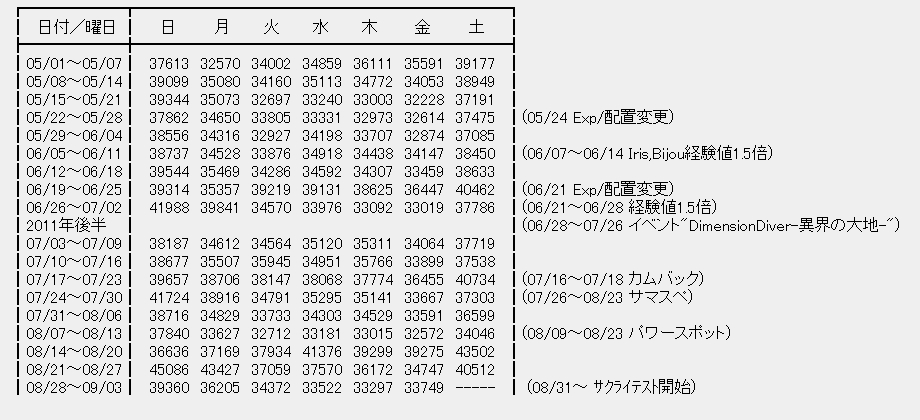 見れない方の為に解説しますと、マラソンだけで経験値が入ると言うお祭りの時に45kという接続数を叩きだすも、R2とも言われる更なる弱体化を匂わせたため、接続数順調に減少とのことです。マラソンというのがとんでもない麻薬だったらしく、その反動もあるようです。このままだと30k切りそうですって。